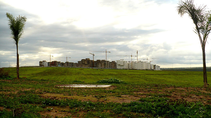 “Cities Without Slums” is an initiative launched by the Moroccan government aimed to tackle the chronic shortage of affordable housing. New city of Tamesna launched in 2007 in an effort to house the residents of the informal settlements in the rural regions of Sidi Yahya Zaer (SYZ) as a part of this initiative. Early proposals of the new city were modest, yet the end result is much bigger than planned. Although the project was meant to alleviate the high housing demand in Rabat and Temara, the newly constructed units were aimed towards the middle class and featured market grade housing that is unaffordable to those living in the slums. When the prices were dropped and residents began populating the new city in 2010, two-thirds of the people refuse to relocate to Tamesna, citing poor living conditions, small quarters, and the cost of social housing (high mortgage are put upon those who move into Tamesna).Residents who moved in refused to make payments, built illegal extensions, and demanded better maintenance and infrastructure. Public commodities such as infrastructure, schools, churches, parks etc. lagged behind the construction of housing, turning Tamesna into a dormitory town.