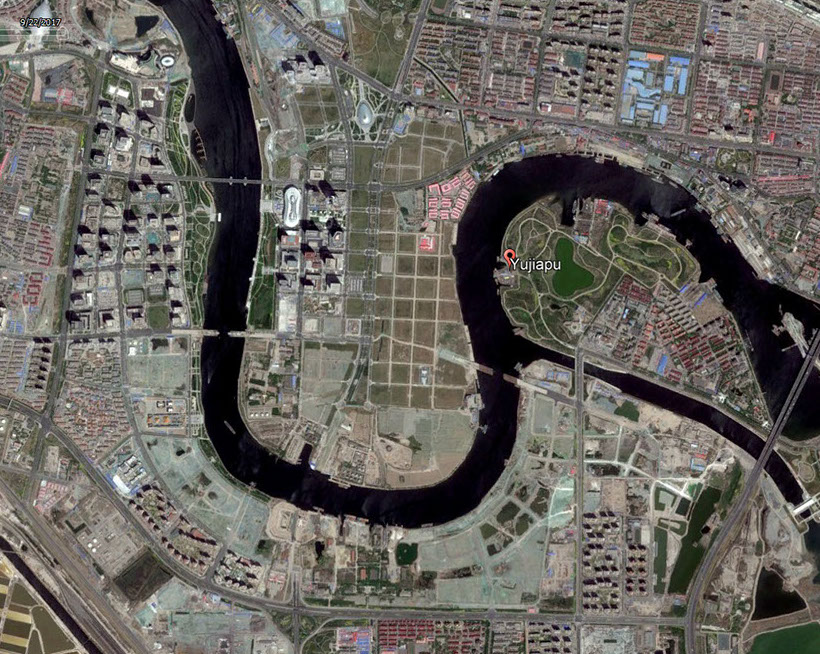 Yujiapu Financial District (Chinese: 于家堡金融区) is an under construction central business district in China’s Tianjin Binhai New Area. The area is envisioned as a potential center for world trade and finance. The district is being developed with a total investment of about 200 billion Yuan, and is located on the Haihe River North Shore, with Xiangluowan Business District and TEDA. Yujiapu was originally scheduled for completion in 2019, offering 164 million square feet of office space over an area larger than Manhattan’s financial district in a bid to stimulate development of vast residential districts nearby.